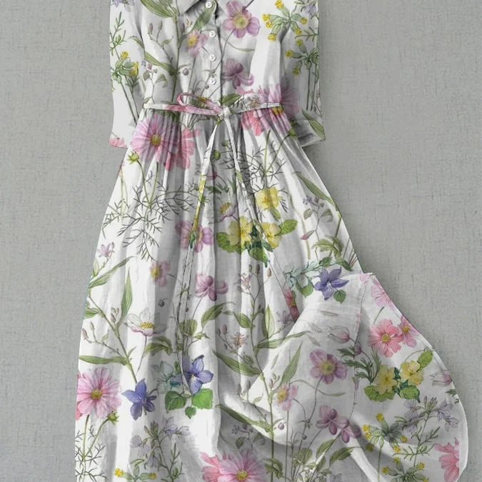 Isla - Elegant Cotton Linen Mid Sleeve Dress