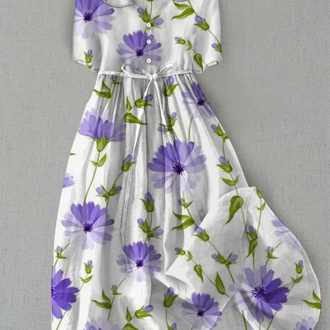 Livia - Elegant Short Sleeve Floral Dress