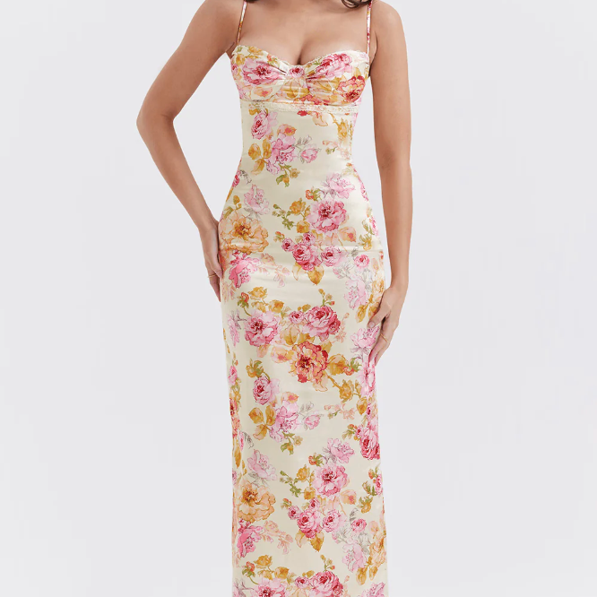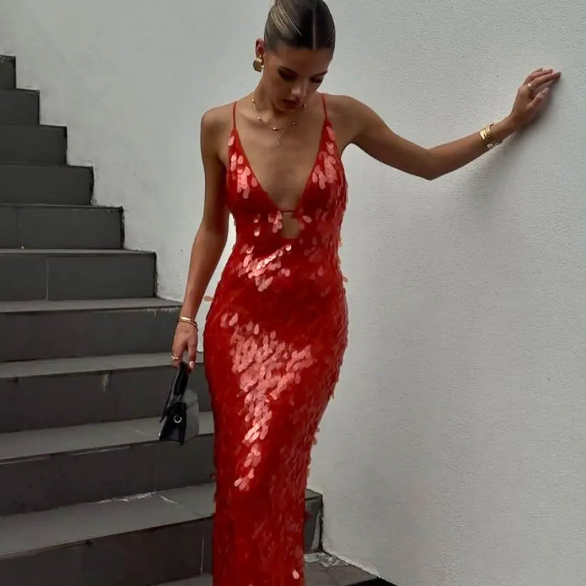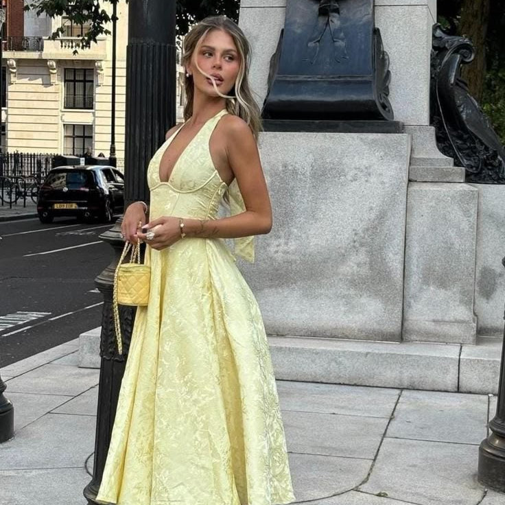 Niamh - Elegant Embroidered Deep V Sleeveless Dress