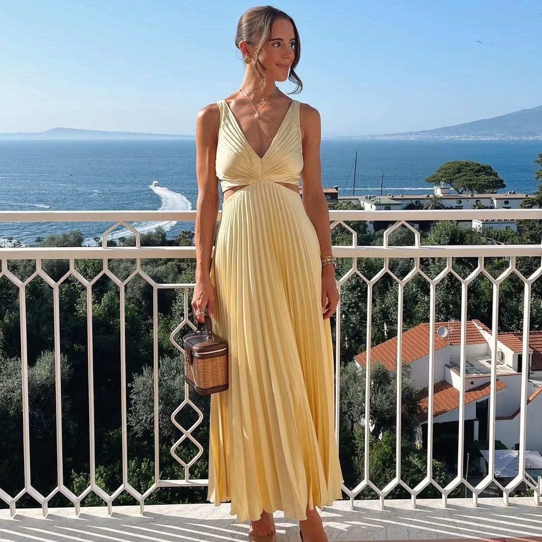 Nayeli - Elegant Pleated V-Neck Maxi Dress
