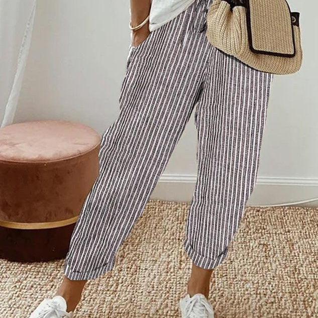Celia | Classic Striped Cotton Trousers