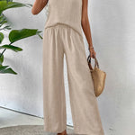The Elowen Set delivers all-day style with none of the fuss. Featuring a sleeveless tank and relaxed-fit pants, this duo creates a sleek, modern silhouette made for real-life wear. The soft, stretchy fabric ensures comfort, while the minimalist design keeps you looking effortlessly pulled together—whether you're out running errands or enjoying a laid-back brunch.